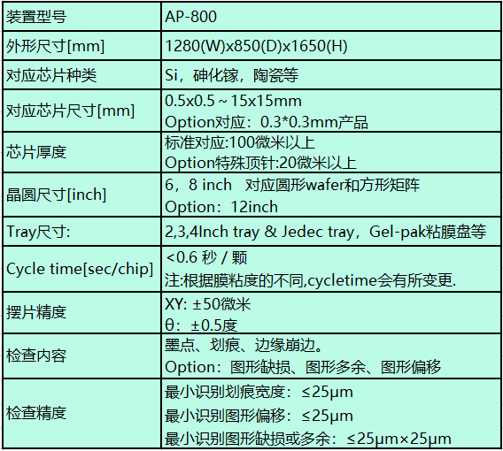 * 對(duì)應(yīng)Die尺寸標(biāo)準(zhǔn)0.5x0.5~15x15mm,option 0.3*0.3mm產(chǎn)品